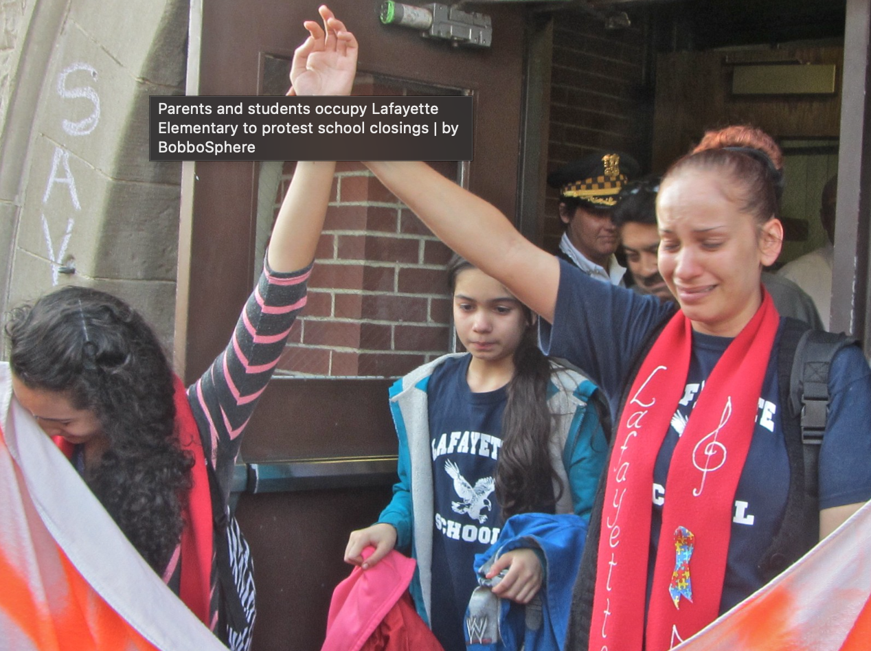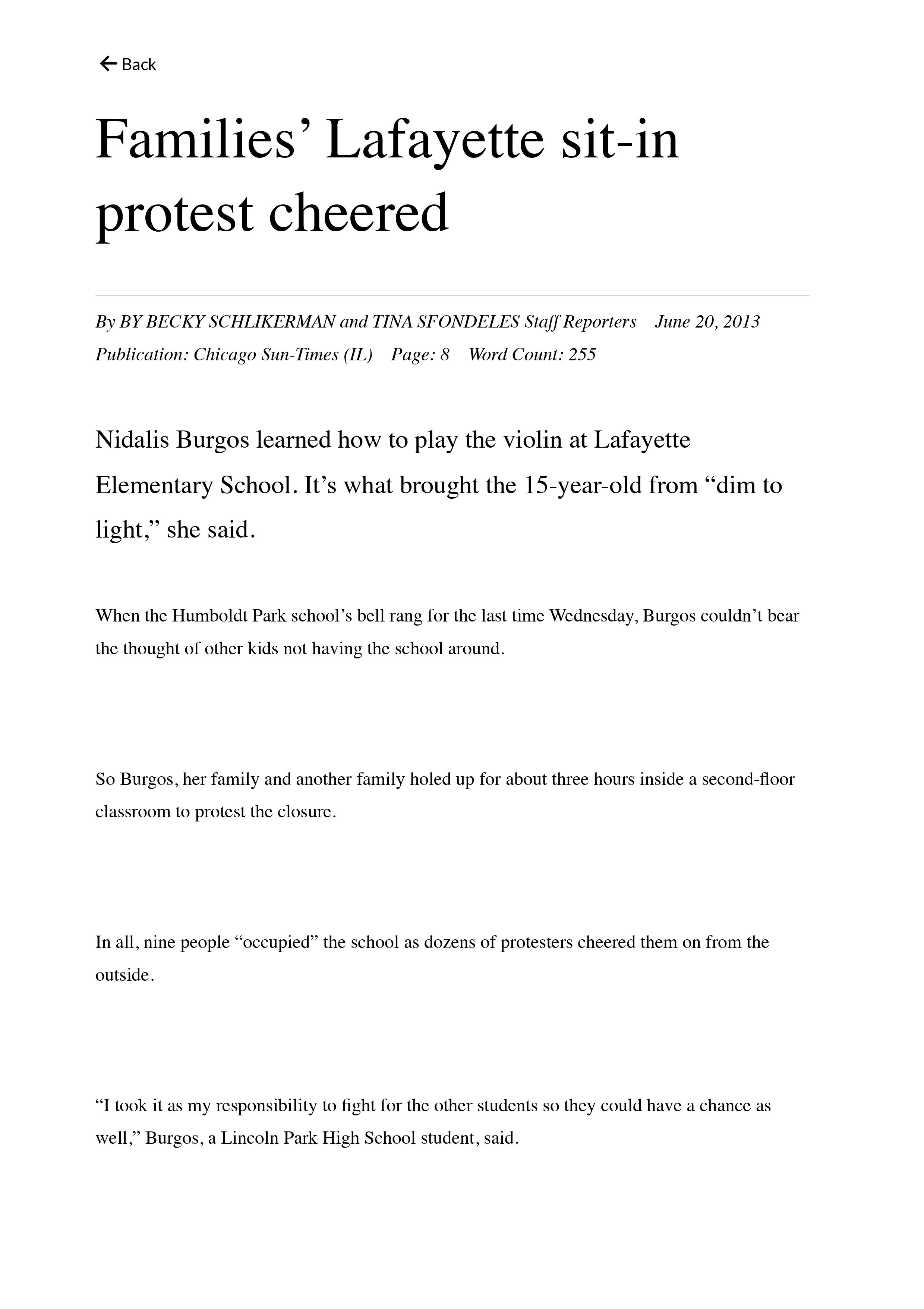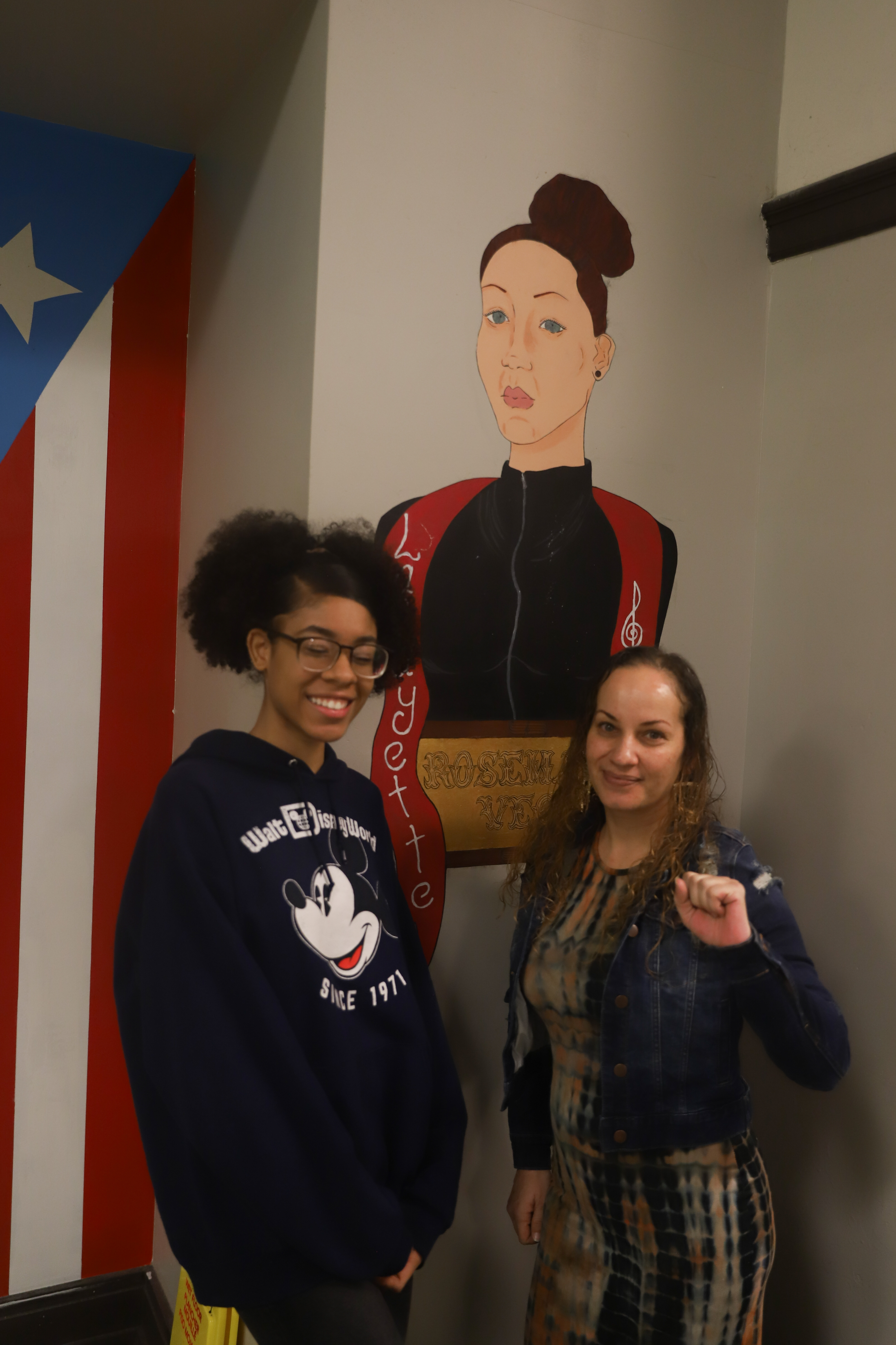 As Rousemary and Jesus were at the forefront of the organizing happening in 2013 with families and the school community, their visibility in articles and images was well documented. Their dedication to the community and attempting to prevent the closure of the school should not only be never forgotten, but honored through this archive/Lafayette History and as seen in the depiction of Rousemary in the mural.