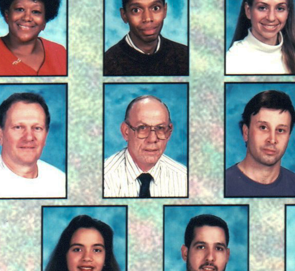 A crop of the 1995-1996 staff yearbook images, Paul Jordan in the middle.