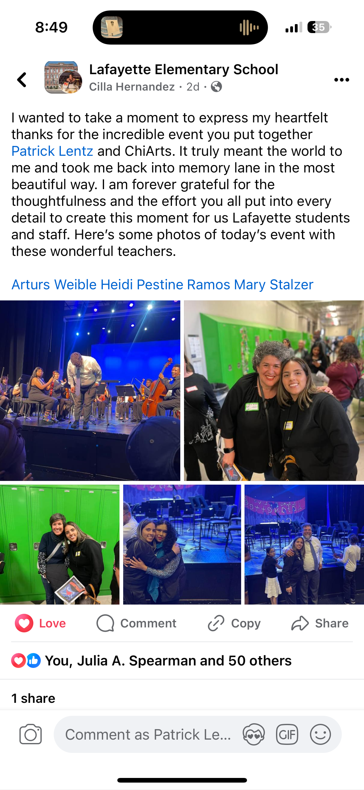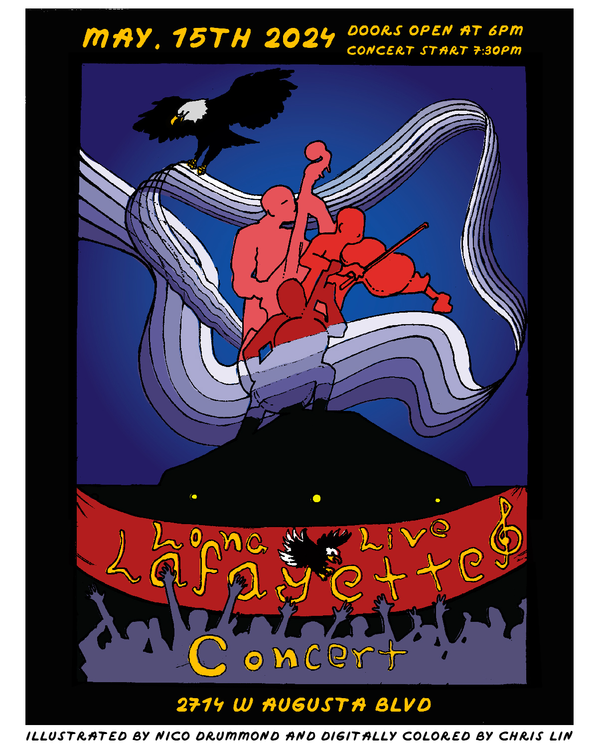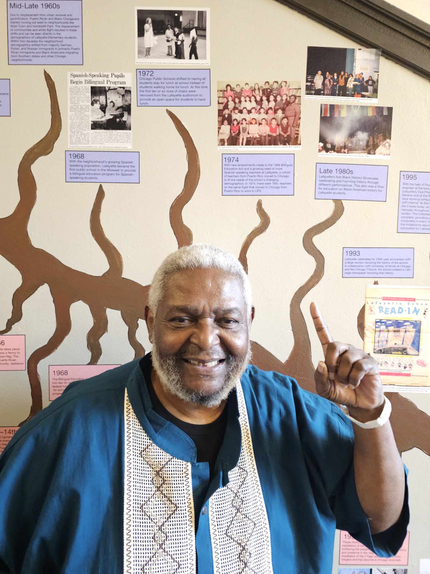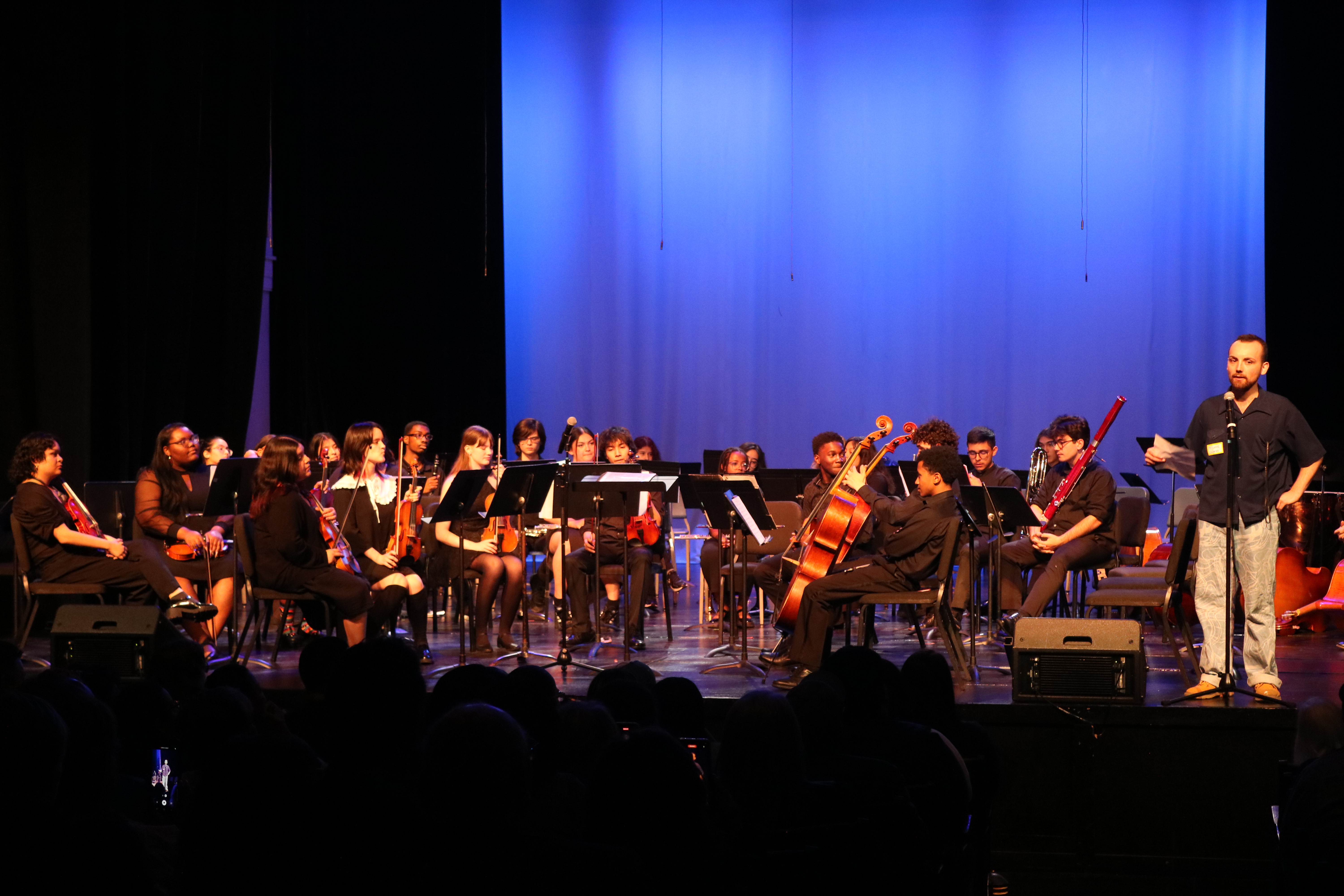 Originally suggested by Karla Hernandez during her interview for the project.. on May 15th, 2024 was a large-scale Lafayette reunion through a joint music concert with Lafayette Alumni, Chopin Elementary (the continued legacy of the music program) and the current ChiArts orchestra. Sharing the stage, Mr. Weible conducted students in the ChiArts/Lafayette auditorium for the first time since 2013 along with the shared lead of Mr. Ritchie (ChiArts Orchestra teacher). The interlude of each song featured a different speaker from Lafayette (as seen in the program below) to root the event in healing, perspective-taking, honest history and storytelling between intersecting communities.